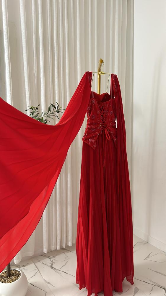 هذا الفستان يُجسّد الرقي بكل تفاصيله! تصميمه مستوحى من الطابع الملكي الكلاسيكي، لكن بلمسة عصرية تُبرز جمال وأنوثة كل من ترتديه. اللون البيج الهادئ يضفي عليه طابعاً راقياً وفخماً في نفس الوقت، مثالي للمناسبات الرسمية، حفلات الخطوبة أو جلسات التصوير الراقية.