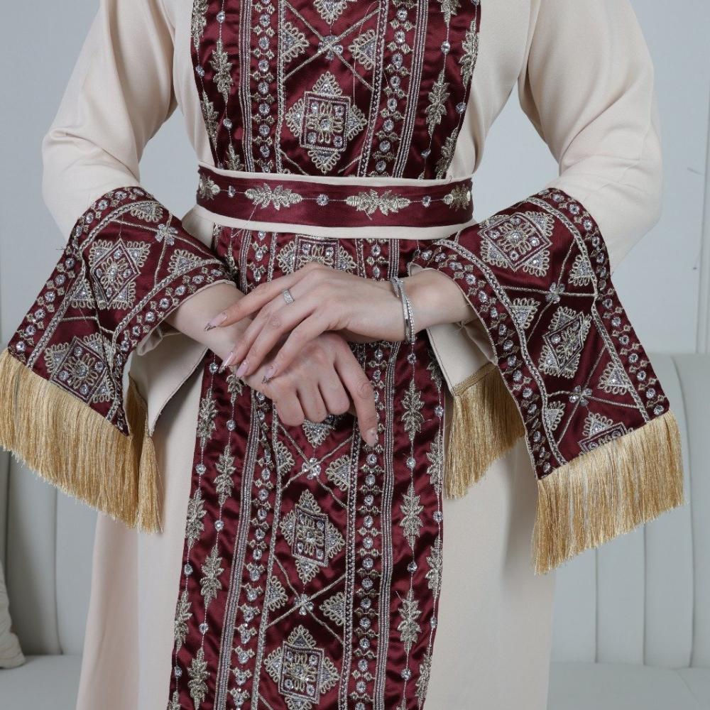 ✦ مزودة بحزام خصر مطرز بنفس النقوش التراثية ليحدد القوام بشكل أنثوي جذاب.