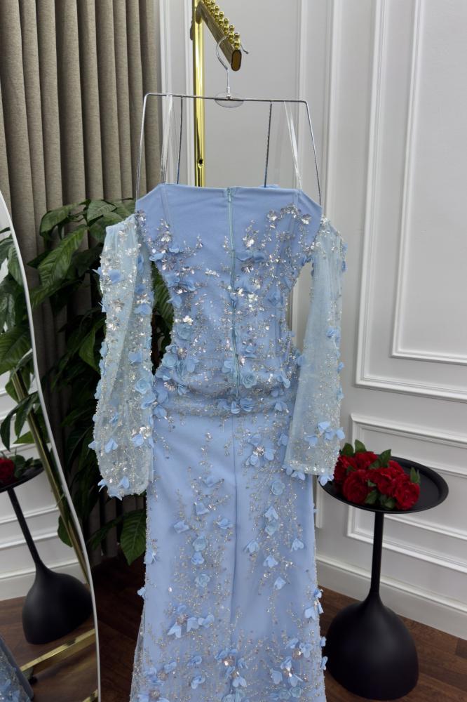 فستان سهرة فاخر بلون أزرق سماوي ✨