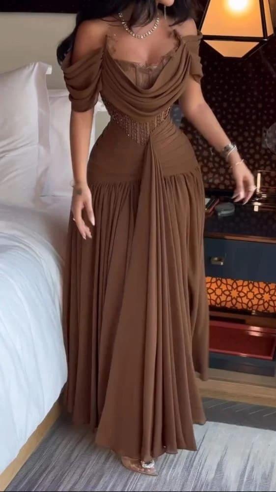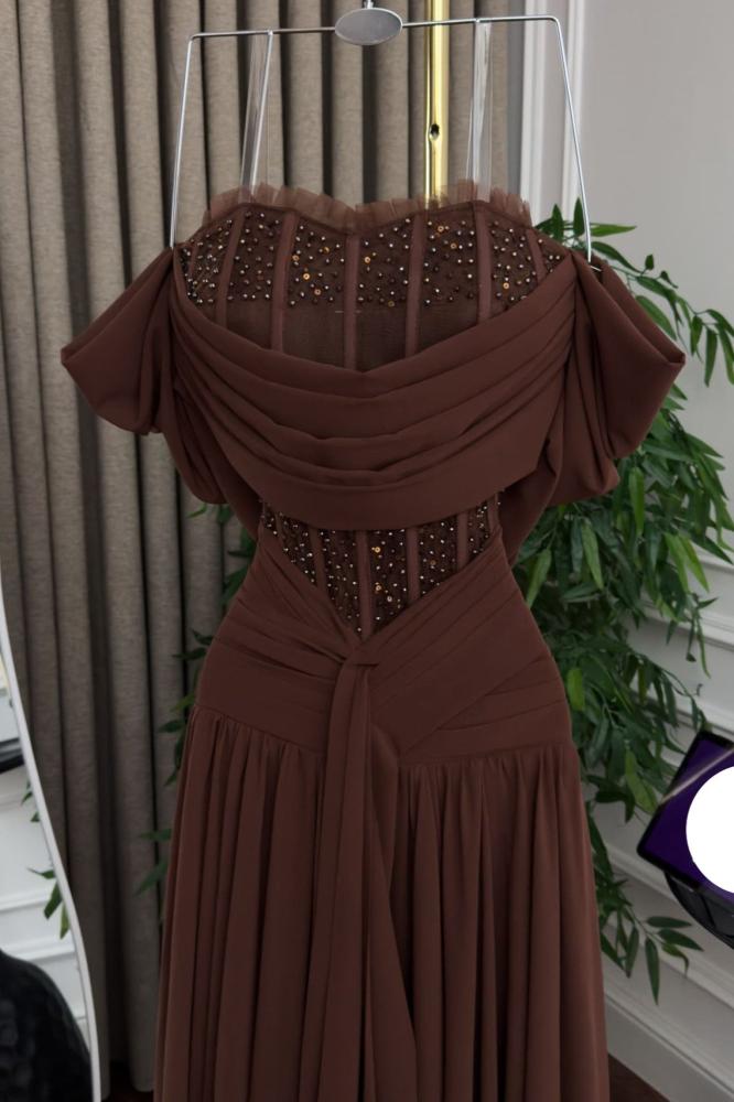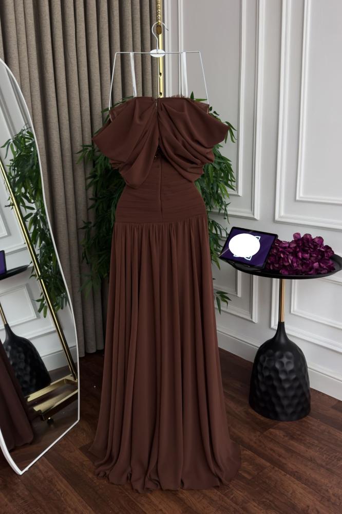 فستان سهره بني فساتين سهره طويلة فستان سهره شيفون ناعم فستان سهره ناعم