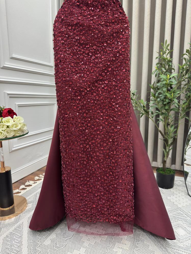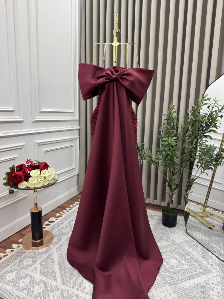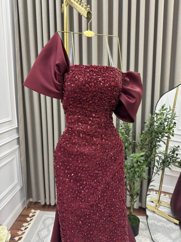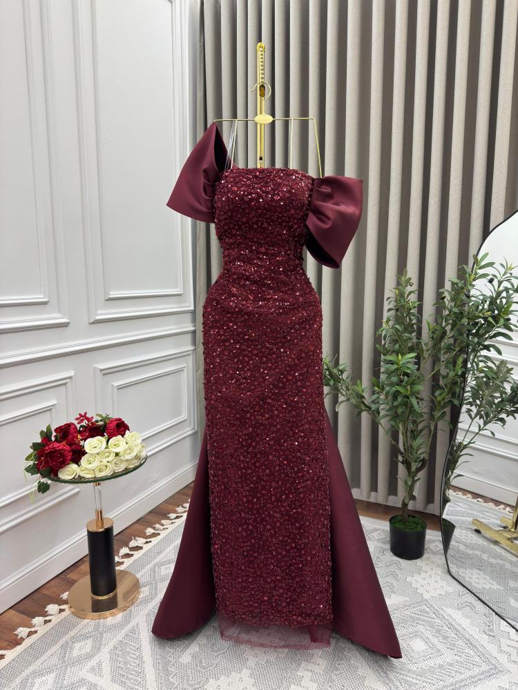 هذا الفستان الراقي يجمع بين الفخامة والرقي، وهو مثالي للسهرات والمناسبات الفاخرة. يتميز بلونه العنابي الغني الذي يضفي لمسة ملكية وجاذبية لا تُقاوم.