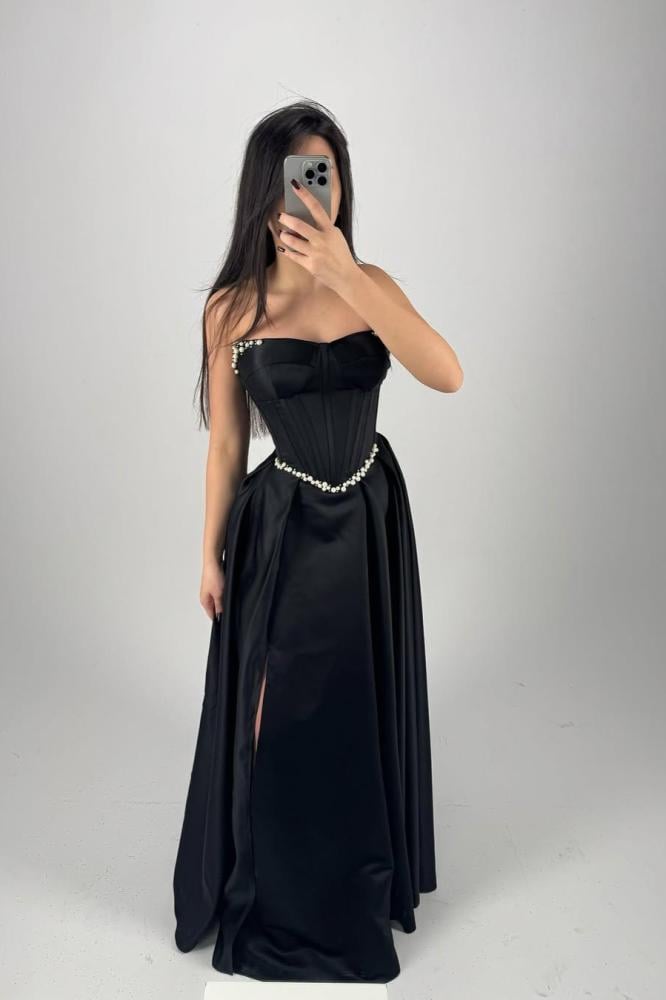 استمتعي بإطلالة ملكية تأسر الأنظار مع هذا الفستان الأسود الفخم المصمم بدقة ليجمع بين الرقي والأنوثة الكلاسيكية. مصنوع من خامة الحرير الفاخر، يتميز الفستان بلمعانه الناعم الذي يعكس الضوء بانسيابية ساحرة، ما يمنحك حضورًا متألقًا في السهرات والمناسبات الخاصة.