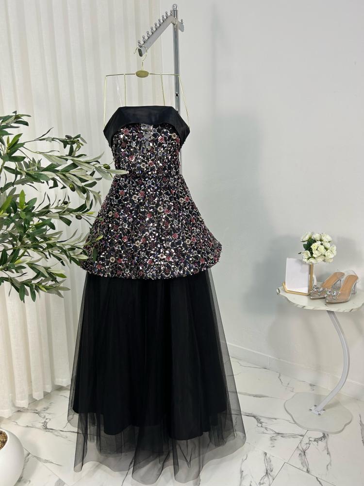 احصلي على إطلالة أنثوية ساحرة تلفت الأنظار بكل أناقة مع هذا الفستان الأسود المميز، المصمم بذوق رفيع وتفاصيل متقنة تناسب السهرات والمناسبات الفخمة.