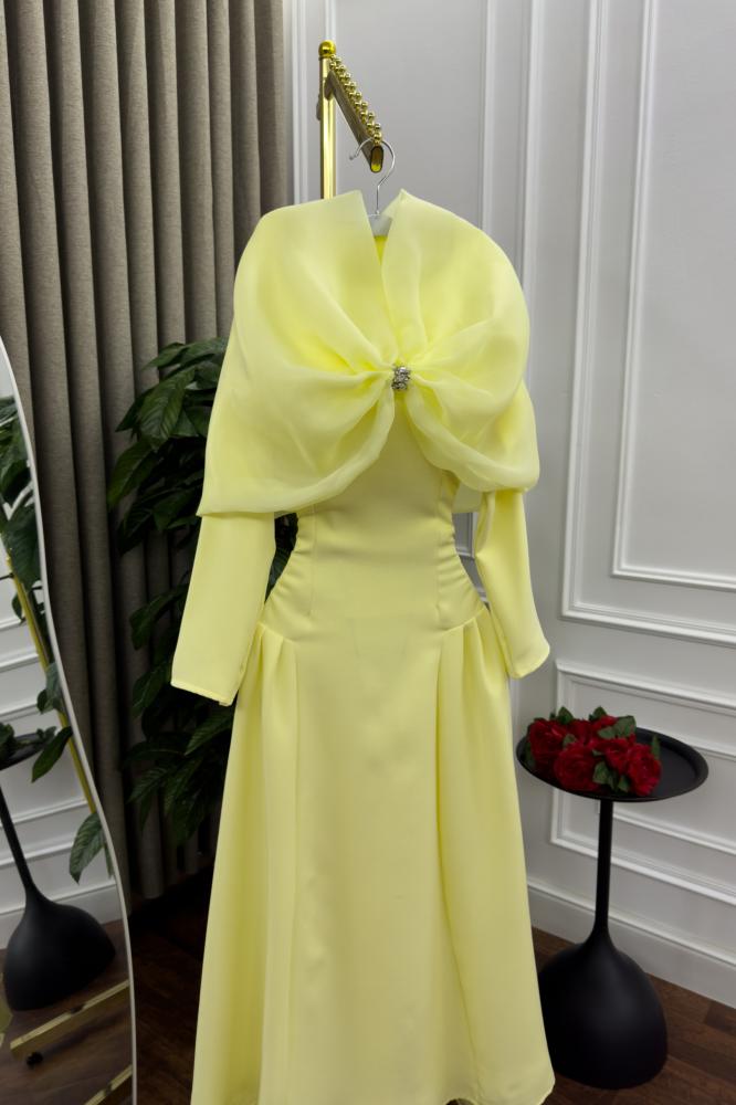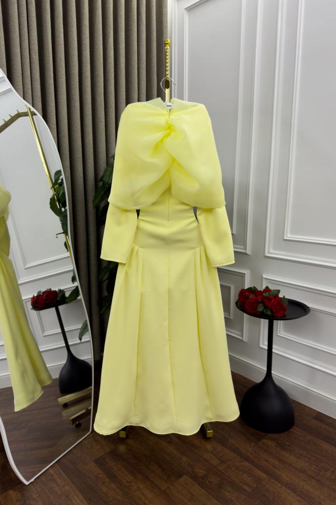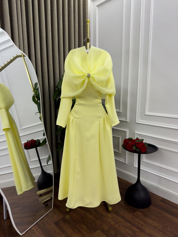استمتعي بإطلالة أنيقة تنبض بالأنوثة والفخامة مع هذا الفستان الأصفر الرائع المصمم بدقة ليناسب أرقى المناسبات.