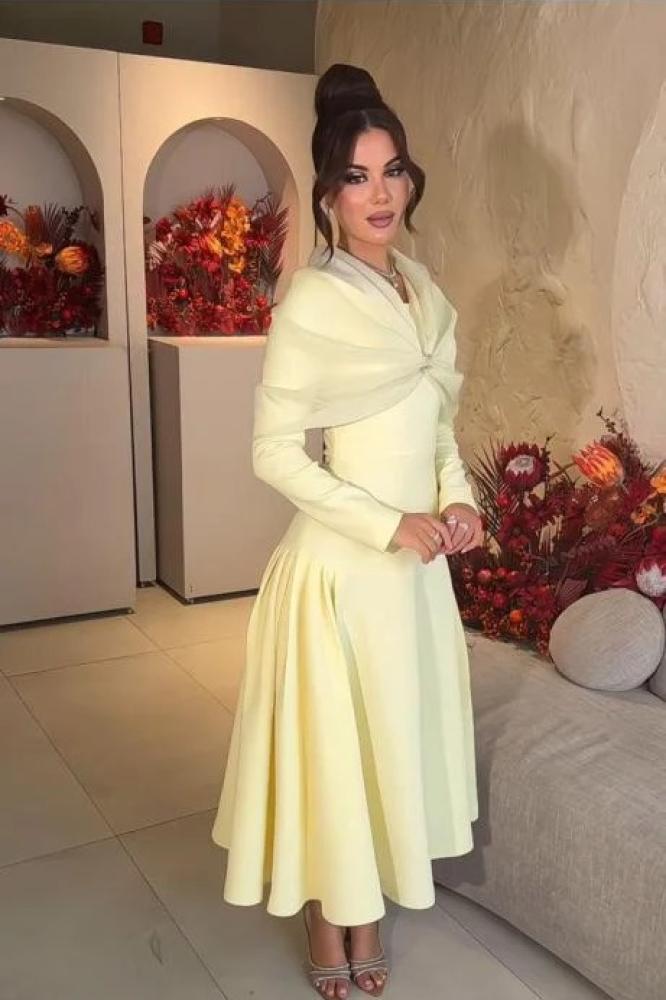 فستان ناعم ميدي أصفر - فساتين ناعمة فخمة