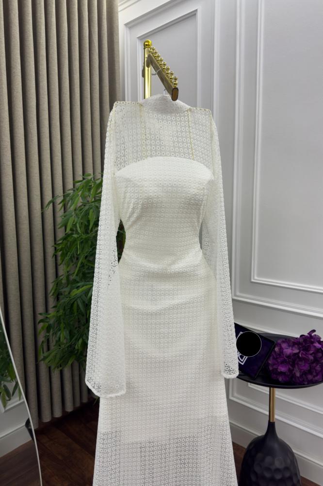 استمتعي بإطلالة راقية وجذابة مع هذا الفستان الأبيض الفخم المصمم من خامة الجبير الراقية، التي تضيف لمسة من الأنوثة والفخامة. يتميز الفستان بقصّة أنيقة تتناسب مع مختلف المناسبات مثل فساتين السهرة، فساتين العيد، والمناسبات الفاخرة.