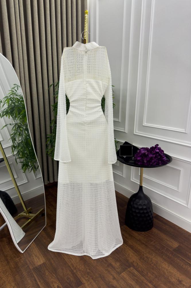 فستان جبير أبيض، فساتين سهرة 2024، فساتين العيد، فساتين راقية للمناسبات، فساتين فخمة للمناسبات الخاصة، موضة الفساتين الطويلة.