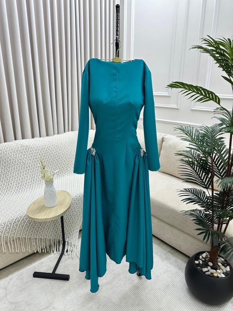 هذا الفستان الراقي مصمم بأسلوب يجمع بين النعومة والكلاسيكية، ليكون خيارًا مثاليًا للمناسبات المميزة، سواء في الأعياد، الحفلات، أو اللقاءات الرسمية.