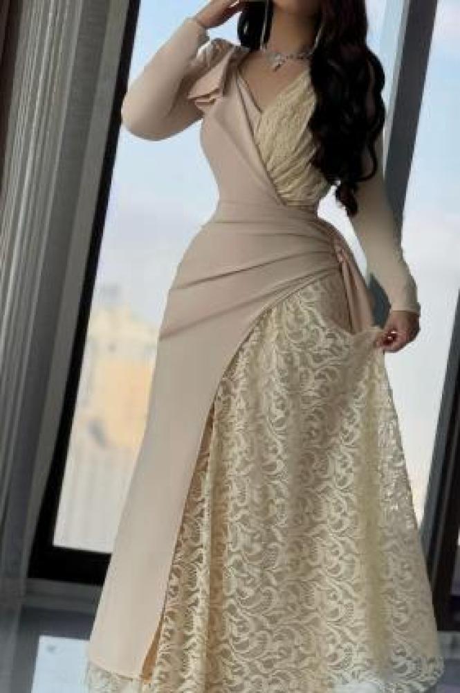 - الفتحة الجانبية: تصميم أنيق يظهر جزءاً من الدانتيل الفاخر، مما يضيف لمسة أنثوية جذابة ويعطي حرية أكبر في الحركة.