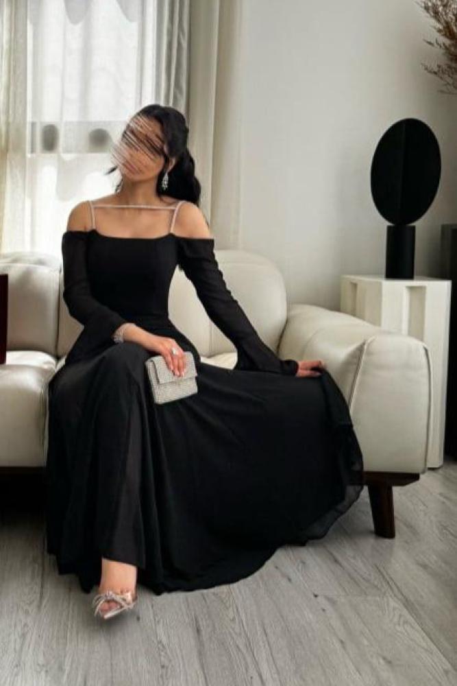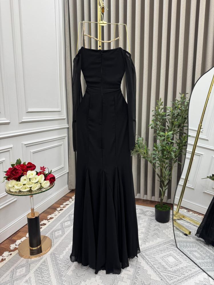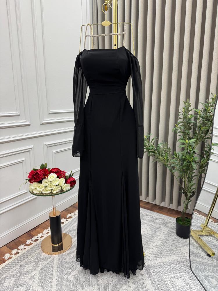 - اللون الأسود الكلاسيكي يمنح الفستان طابعًا فاخرًا يناسب جميع المناسبات.