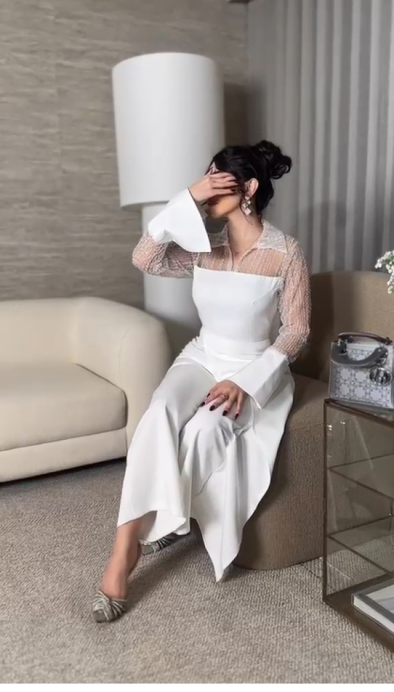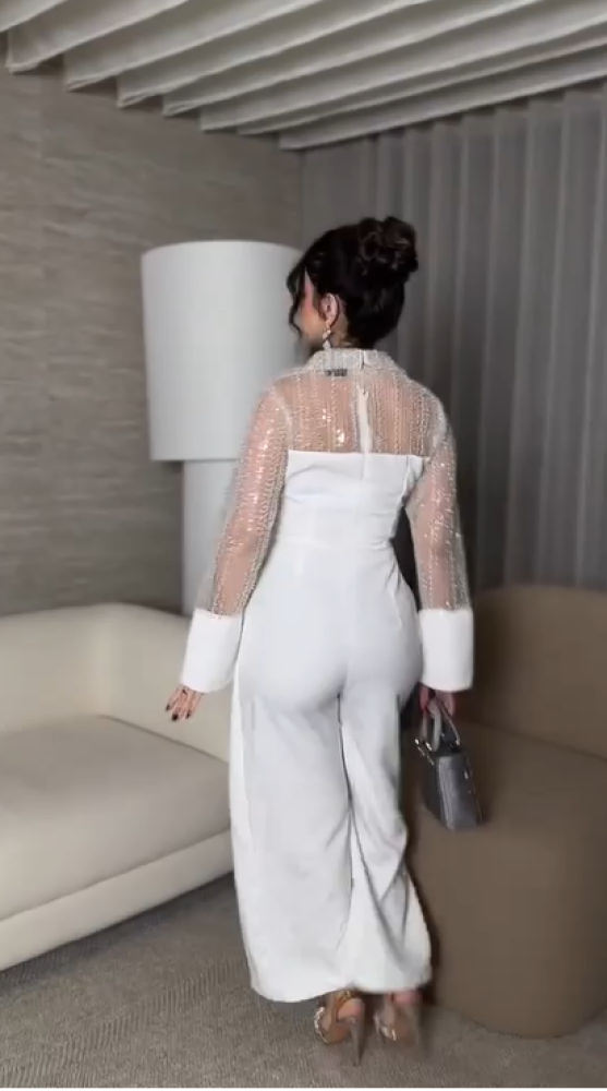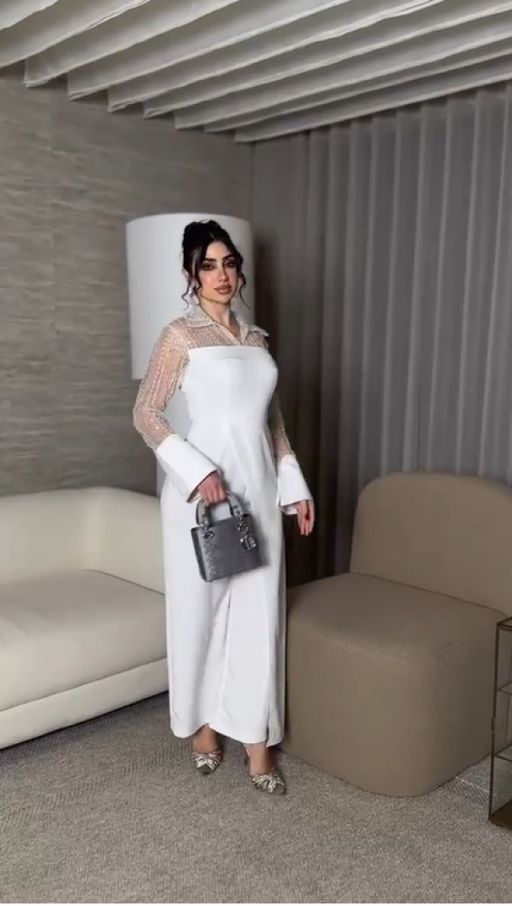 جمبسوت أبيض، جمبسوت أنيق، جمبسوت سهرة، جمبسوت للمناسبات، جمبسوت 2025، فساتين وجمبسوت أنيق، ملابس نسائية فاخرة، موضة 2025.