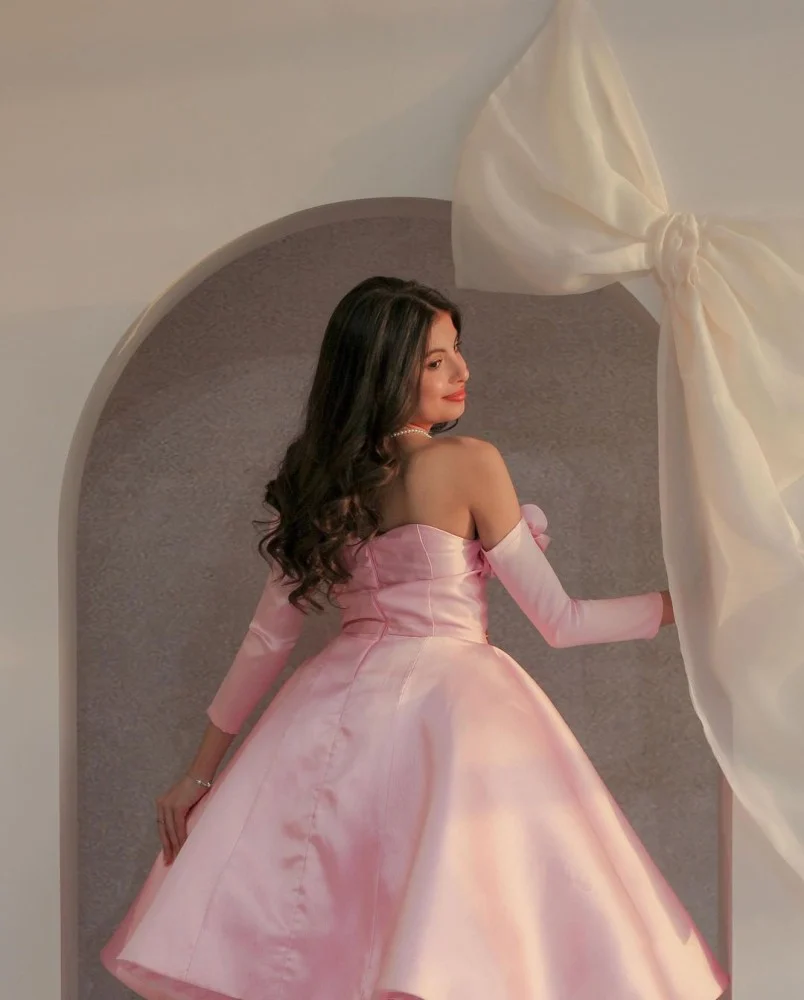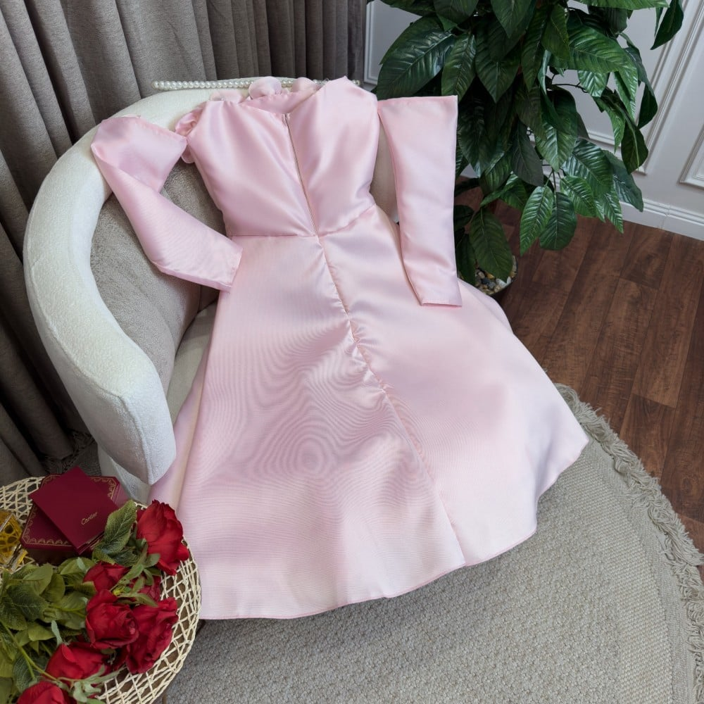 هذا الفستان الرائع يعكس الأنوثة والرقي بتصميم أنيق وفريد يناسب المناسبات الفاخرة مثل حفلات الخطوبة، أعياد الميلاد، والحفلات الرسمية. يتميز بلونه الوردي الناعم الذي يضفي لمسة من الرومانسية والجمال.